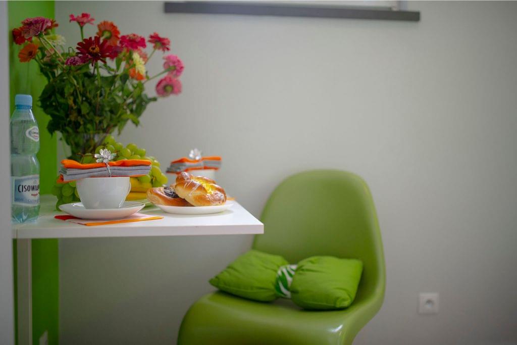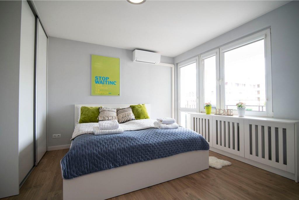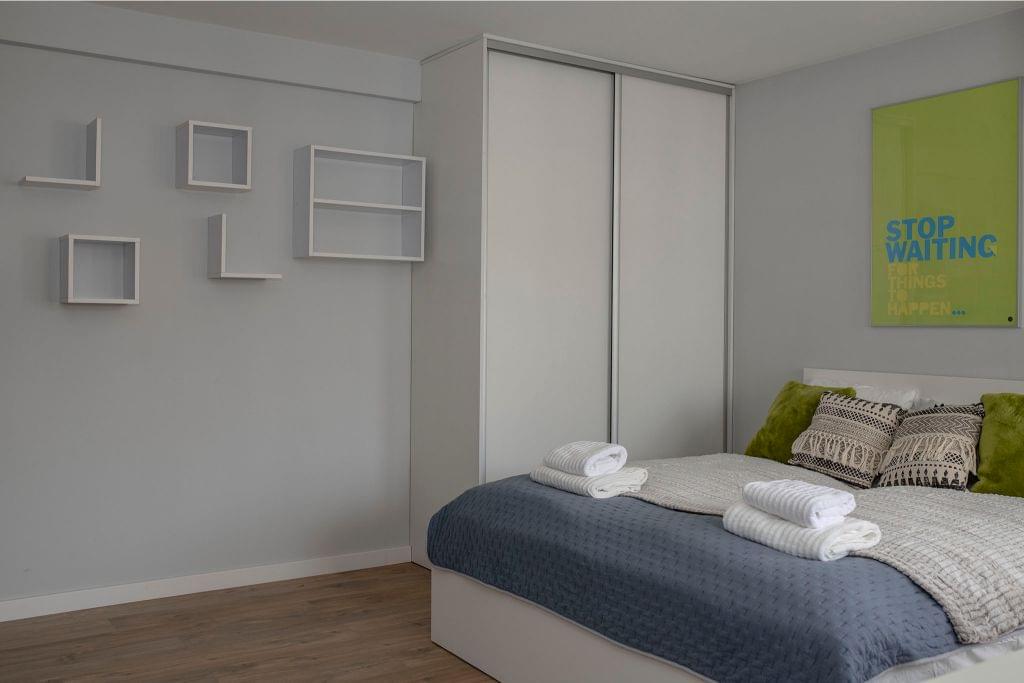 Het bed is 180 cm breed, wat zorgt voor een comfortabele slaap voor zelfs 3 personen (twee volwassenen en een kind). Het appartement heeft een oplader voor mobiele apparaten, met drie tips (Samsung, iPhone, USB-C). Met de ruime garderobe kunt u gemakkelijk de orde handhaven in het geval van langere verblijf. Het appartement heeft een strijkplank en een ijzer, evenals een haardroger. Het appartement heeft twee stoelen en een tafel waarop u comfortabel een maaltijd kunt eten of op een computer of tablet kunt werken.