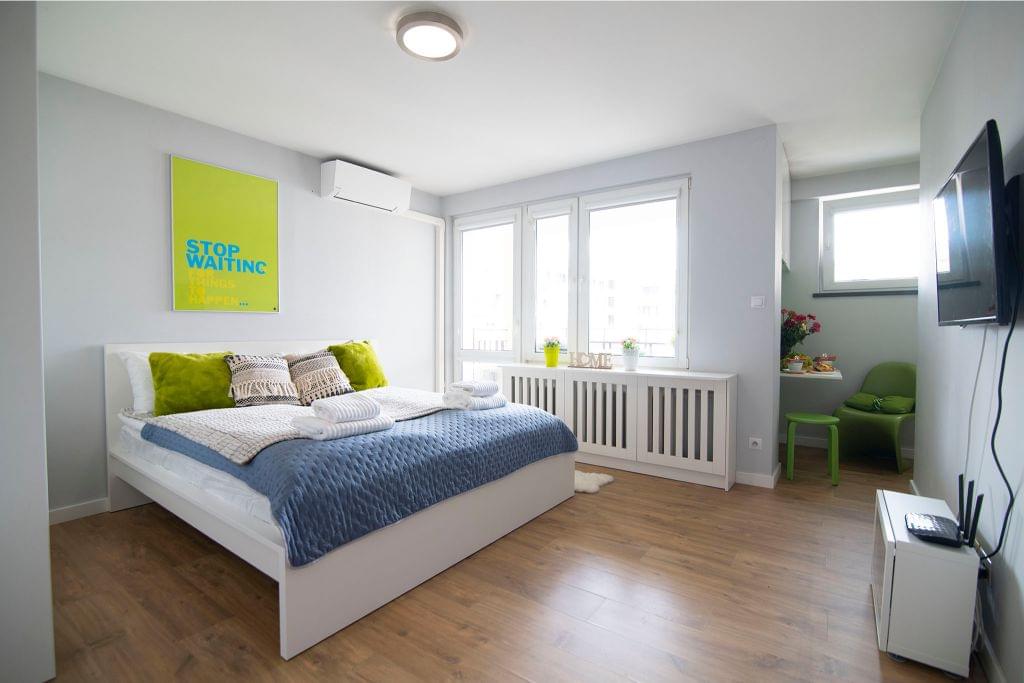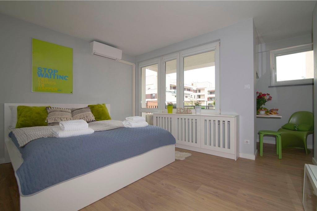 Een gezellige studio met airconditioning en een balkon ideaal voor kort en lang verblijf in Warschau.