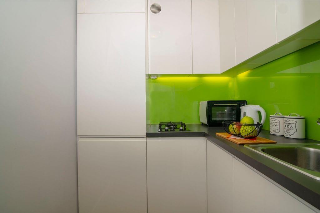 De keuken is uitgerust met een grote koelkast, die voldoende is voor twee mensen die zelfs vele dagen komen. Het heeft een verwarmingsplaat voor 2 branders. De keuken is uitgerust met alle basisapparatuur. U kunt elke maaltijd bereiden of verwarmen. Het appartement heeft bestek, glazen, glazen, platen, enz. Een koffiemachine voor Nespresso voor capsules is ook beschikbaar. Het ontbijt kan alleen worden gegeten of naar een van de vele restaurants in de buurt gaan, waar het ontbijt wordt geserveerd (in het zomerseizoen in de tuinen).