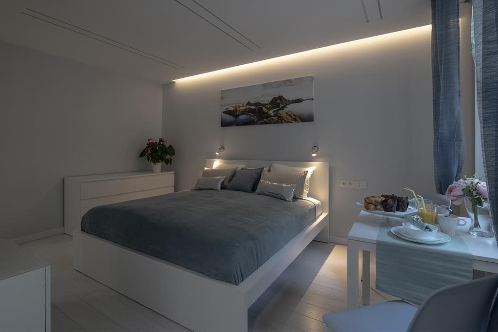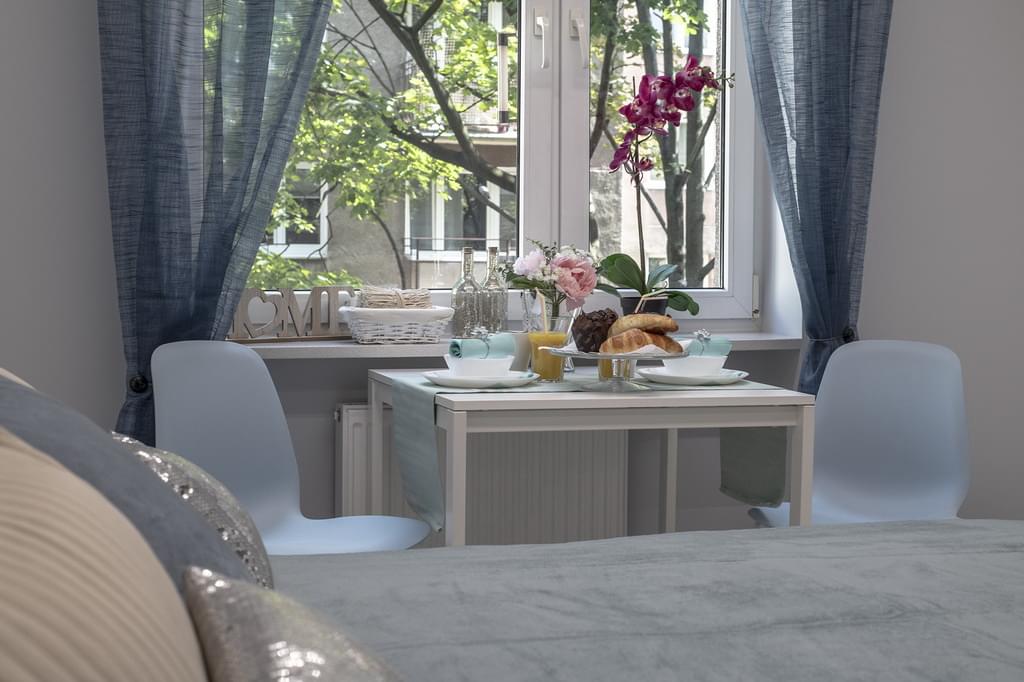 Łóżko ma szerokość 180 cm, co zapewnia komfortowy sen dla nawet 3 osób (dwie dorosłe i dziecko). W apartamencie jest ładowarka do urządzeń mobilnych, z trzema końcówkami (Samsung, iPhone, USB-C). Pojemna szafa pozwoli na łatwe utrzymanie porządku w przypadku dłuższych pobytów. W mieszkaniu jest deska do prasowania oraz żelazko, a także suszarka do włosów. W apartamencie znajdują się dwa krzesła oraz stół, na którym można komfortowo zjeść posiłek lub popracować na komputerze czy tablecie.