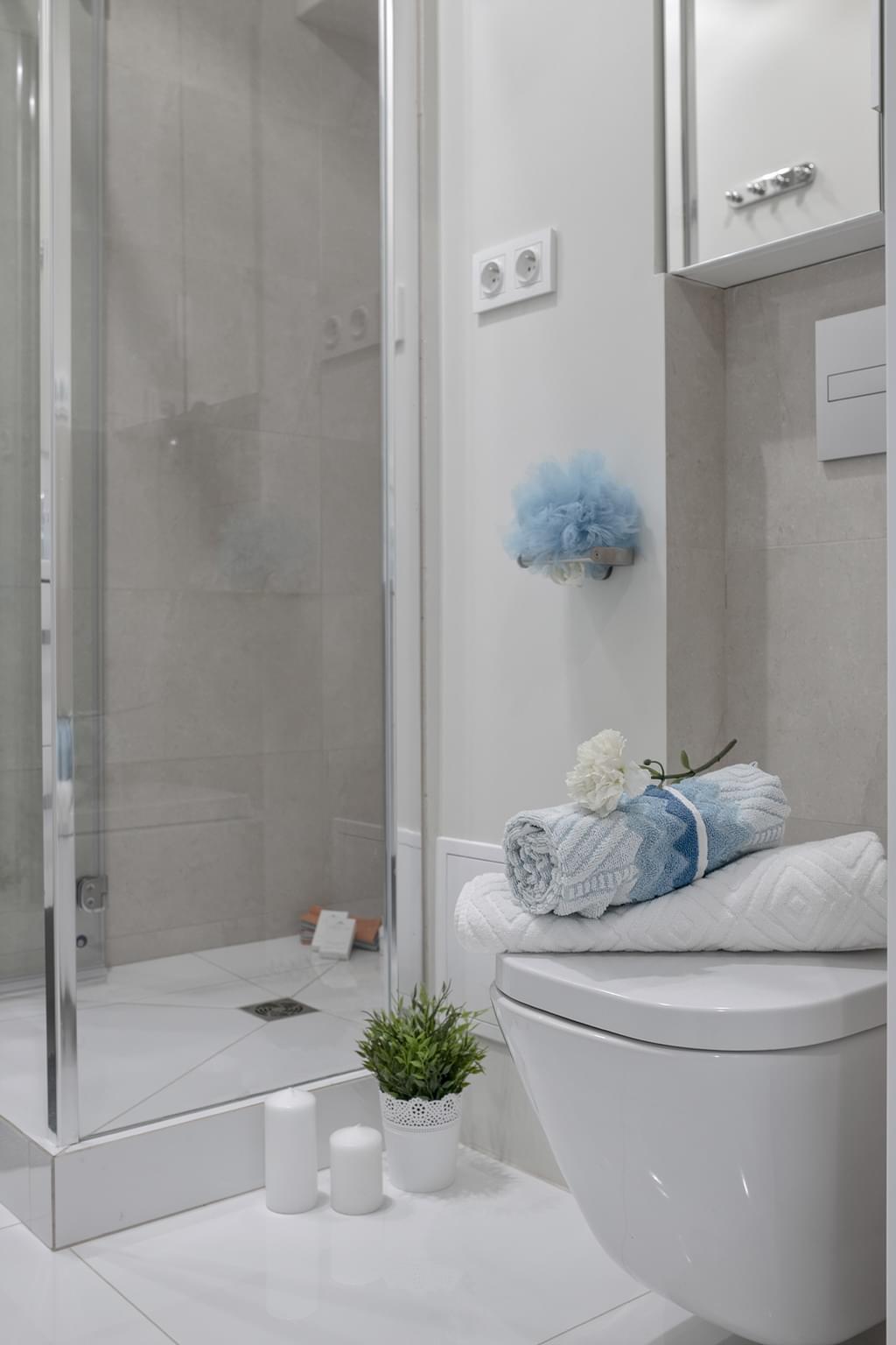 W łazience oferujemy bezpłatny zestaw kosmetyków oraz czyste ręczniki. Prysznic posiada baterię termostatyczną.