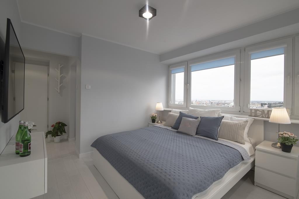 Łóżko ma szerokość 180 cm, co zapewnia komfortowy sen dla nawet 3 osób (dwie dorosłe i dziecko). W apartamencie jest ładowarka do urządzeń mobilnych, z trzema końcówkami (Samsung, iPhone, USB-C). Pojemna szafa pozwoli na łatwe utrzymanie porządku w przypadku dłuższych pobytów. W mieszkaniu jest deska do prasowania oraz żelazko, a także suszarka do włosów. W apartamencie znajdują się dwa krzesła oraz stół, na którym można komfortowo zjeść posiłek lub popracować na komputerze czy tablecie.