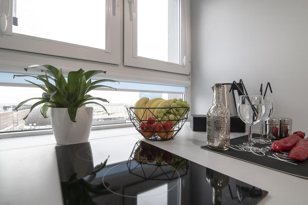W mieszkaniu jest deska do prasowania oraz żelazko, a także suszarka do włosów. W apartamencie znajduje się w pełni funkcjonalna kuchnia, wyposażona we wszystkie podstawowe sprzęty, dzięki czemu można przygotować lub podgrzać dowolny posiłek. W mieszkaniu znajdują się sztućce, szklanki, kieliszki, talerze itp.
