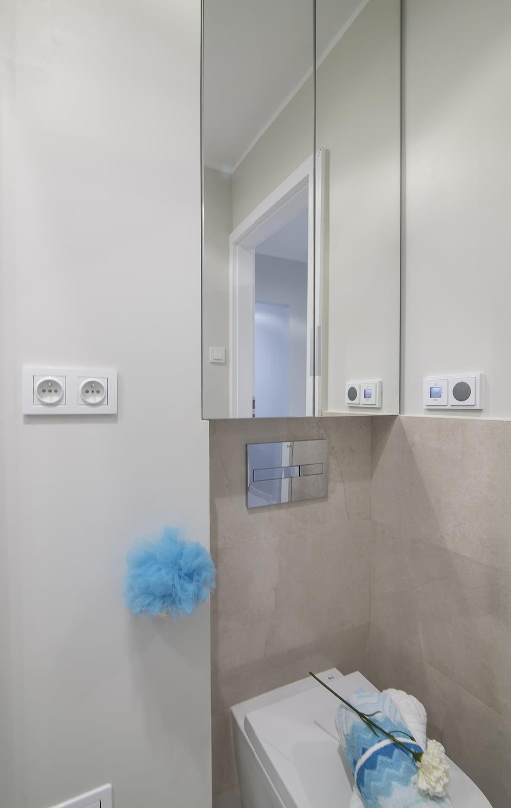 Mieszkanie jest dobrze nasłonecznione, co jest dodatkowym atutem w chłodnym klimacie, ale posiada w każdym oknie rolety oraz zasłony sterowane elektrycznie, dzięki którym można komfortowo spać do południa w zacienionym pokoju.